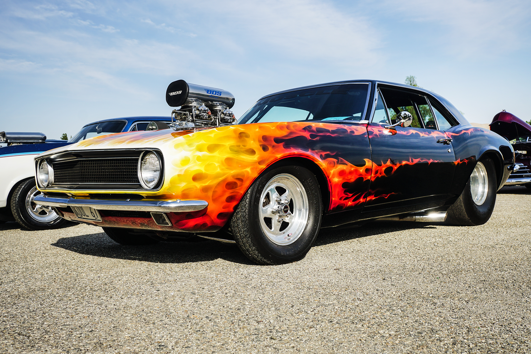 As what is typical of classic car shows there is something for everybody and for me it was this flamin’ hot black 1967 Chevrolet Camaro owned by Chuck Perdue. When I asked Perdue what inspired the flames on his 1000 horsepower Camaro he responded “several years ago I saw a boat in a magazine painted this way and I had to have it on my Camaro.” When Perdue’s rockstar 67′ Camaro is not out for a cruise or at a car show it rests at the showroom floor of Detail Specialists of Bakersfield.