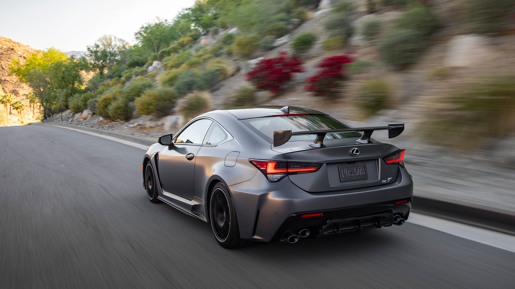 Driving the Track Edition back-to-back with the standard 2020 RC F at The Thermal Club near Palm Springs, California, was eye-opening. The updates to the 2020 model make even the standard RC F a friendlier and livelier dance partner, but the Track Edition upgrades take the RC F from track-capable to track-ready. The difference is immediately apparent and appreciated even more after a few laps have heat-soaked the brakes and left the standard car’s pedal feeling long and soft, even if they’re still plenty able to stop the car. The Track Edition’s upgraded brakes are indefatigable, and the carbon rotors and beefy (yet lightweight) six-piston front Brembo calipers make the car much more confidence-inspiring on the track, while retuned brake-pedal travel improves precision in application.